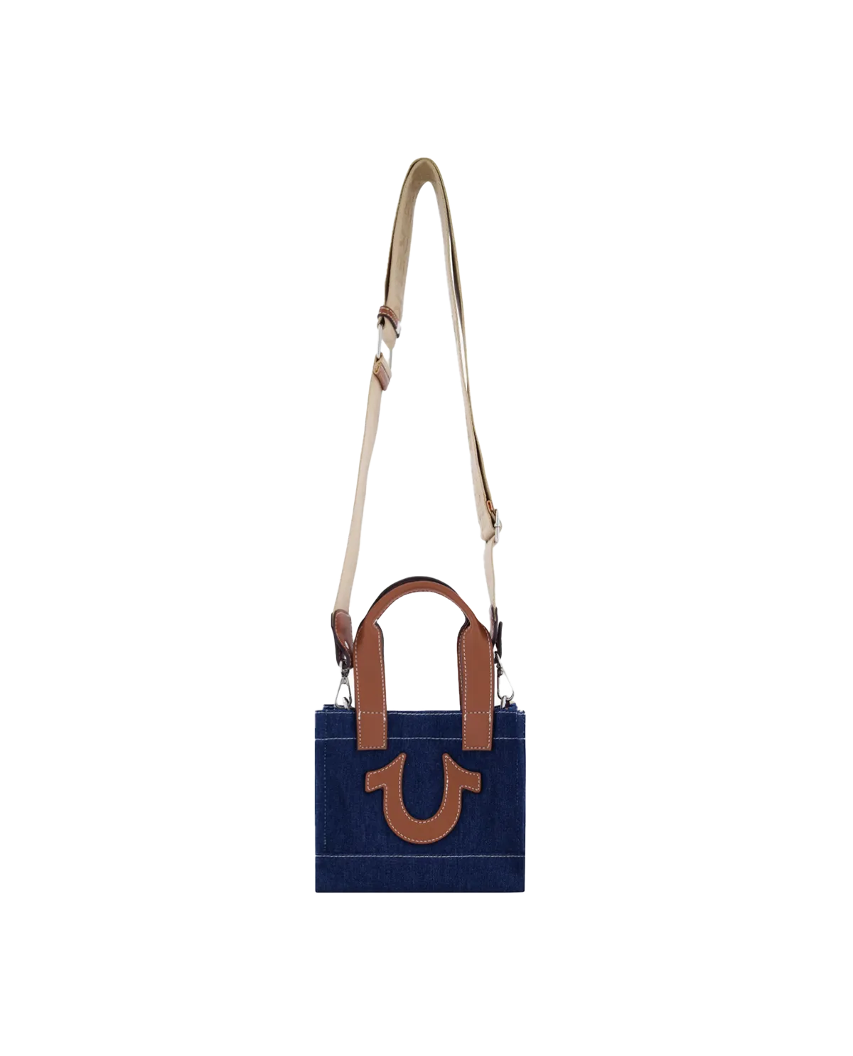 Denim bag features a convenient removable and adjustable shoulder strap with a drop of 19 to 29 inches for ease or travel, top carrying handle with a 5 inch drop, a spacious main compartment with a front slip pocket to store your belongings, and a ma