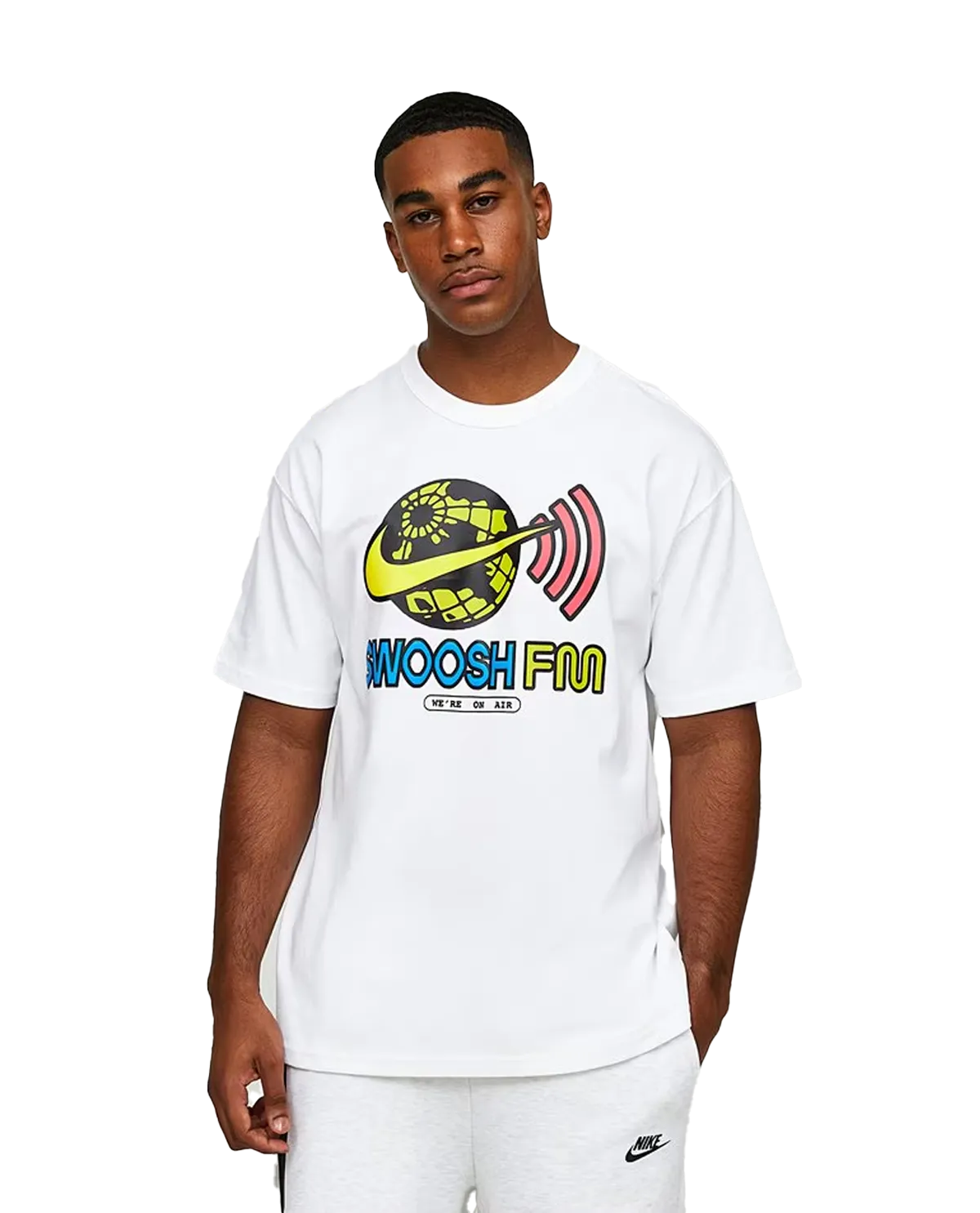 Tune your look to Swoosh FM in this graphic tee. Relaxed shoulders, longer sleeves and a roomy fit through the body and hips give the Max90 tee an oversized and casual look. Made with midweight cotton fabric, making it a softer tee.