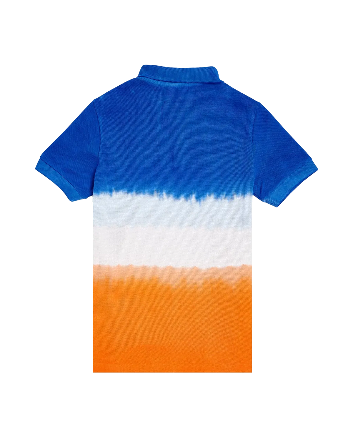 This Polo shirt achieves its vibrant ombré motif through a multi-level dye process and hand-detailing.