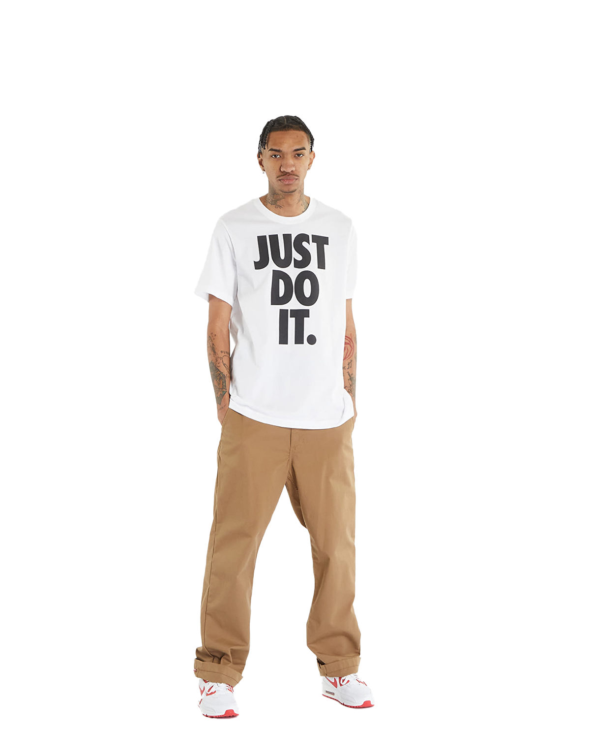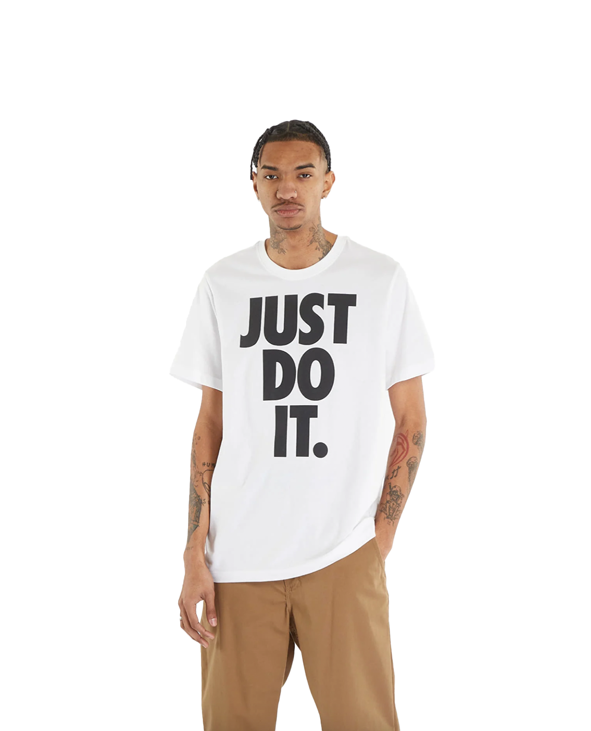 "The Nike Tee", Nike's classic crewneck 100% cotton tees. This tee features the iconic Nike tagline "Just Do It" print at the front.