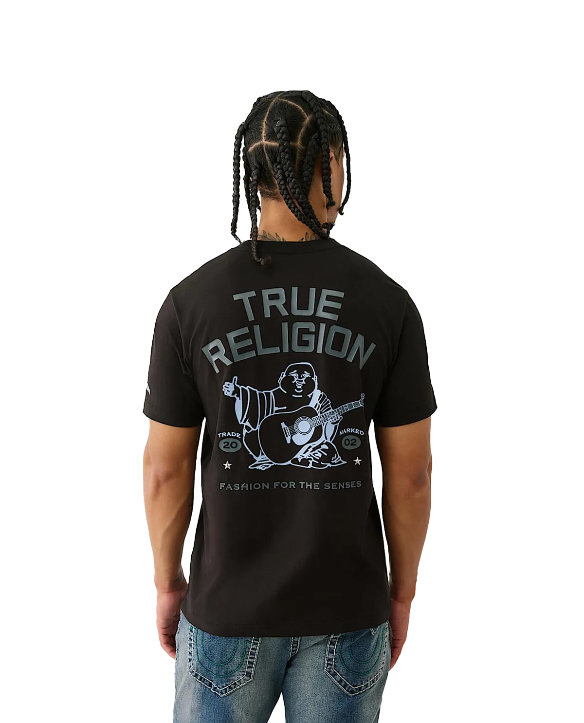 This tee is true to size and offers a classic true religion buddha design at the rear and a chest horseshoe design in the front. The piece is also complimented with star studs on the front and rear design, adding an elevated feeling to the tee.