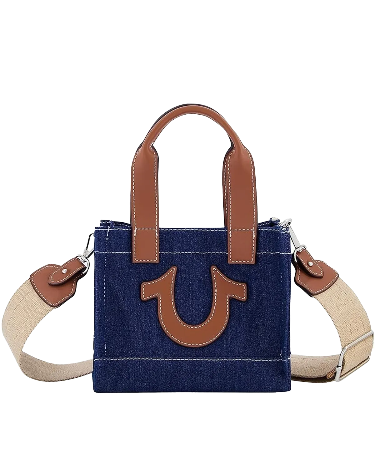 Denim bag features a convenient removable and adjustable shoulder strap with a drop of 19 to 29 inches for ease or travel, top carrying handle with a 5 inch drop, a spacious main compartment with a front slip pocket to store your belongings, and a ma