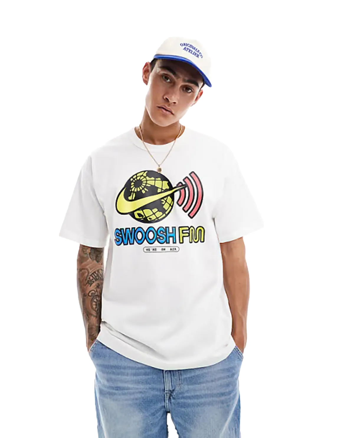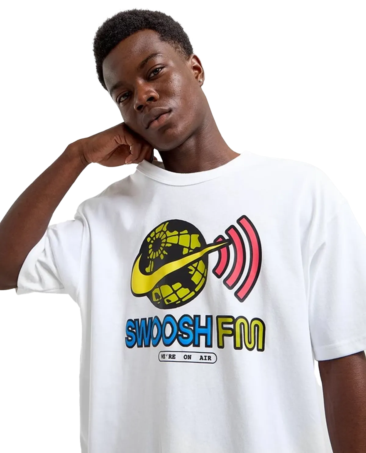 Tune your look to Swoosh FM in this graphic tee. Relaxed shoulders, longer sleeves and a roomy fit through the body and hips give the Max90 tee an oversized and casual look. Made with midweight cotton fabric, making it a softer tee.