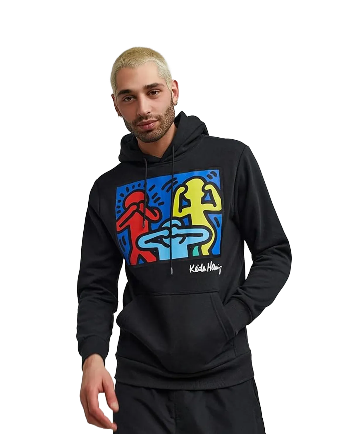Indulge in unparalleled comfort with our Keith Haring Characters Hoodie, made with 100% polyester, ensuring a day-long embrace of warmth and relaxation. Featuring a Keith Harring see no evil, hear no evil, speak no evil design.