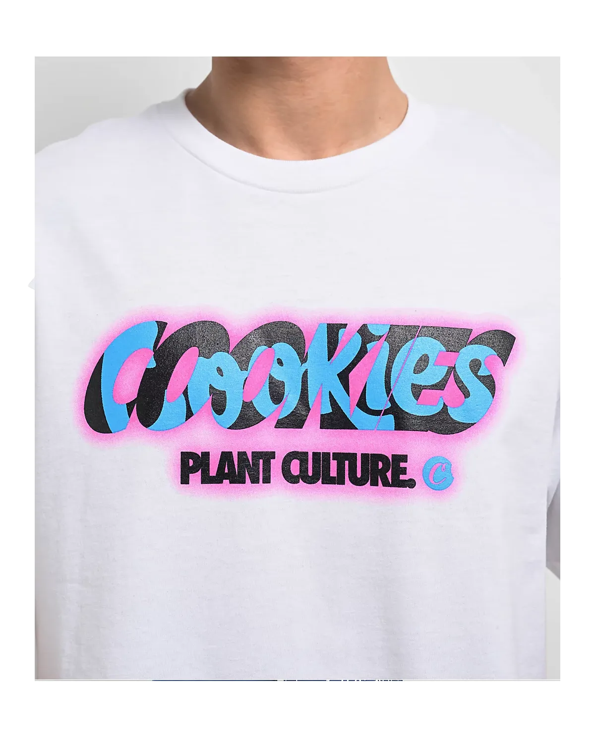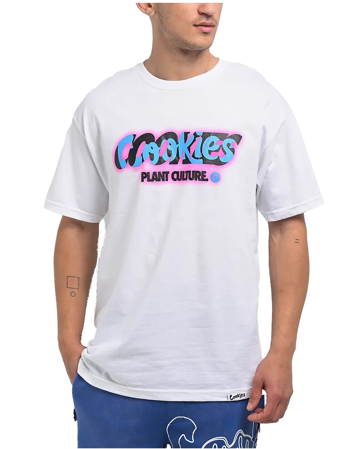 Represent lifestyle brand Cookies with the Plant Culture t-shirt. The white tee features black and blue branding script highlighted with bright pink for an eye-catching look. A woven brand tag on the bottom hem adds modern flair.